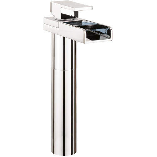 Crosswater Water Square tall basin mixer tap in chrome finish with waterfall spout.