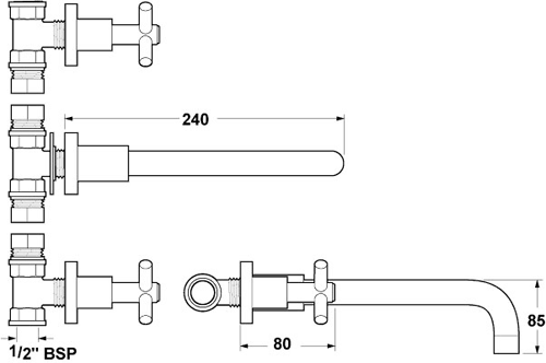 3 Tap Hole Wall Mounted Basin Mixer Tap.