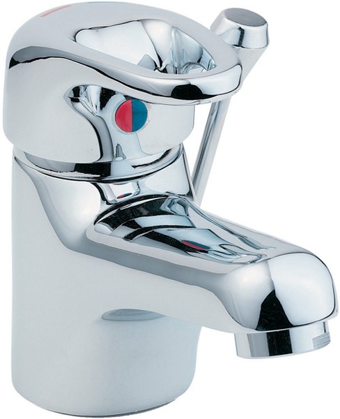 Mono basin mixer tap in chrome with pop up waste. The control for the pop up waste is on the side of the tap. This product can be fitted with a Deva flow restrictor to reduce water wastage and protect the environment.