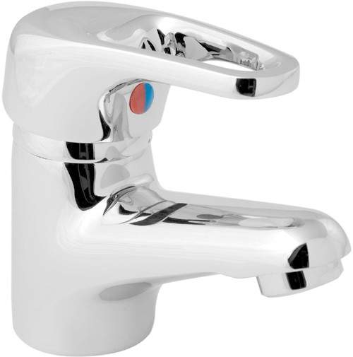 Mini mono basin mixer tap in chrome. Suitable for cloakrooms, caravans and boats. This product can be fitted with a Deva flow restrictor to reduce water wastage and protect the environment.
