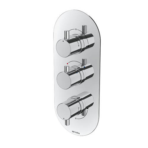 Methven Kaha concealed thermostatic mixer shower/bath valve with ABS backplate and three outlets.