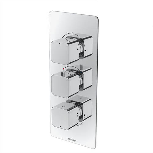 Methven Kiri concealed thermostatic mixer shower/bath valve with chrome backplate and three outlets. KIRI 3D.