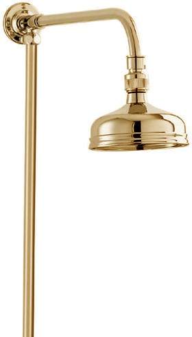 Traditional rigid riser shower kit in gold with 5" rose and swivel joint. Includes gold fixing nuts.
