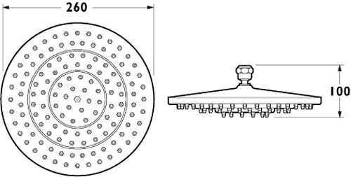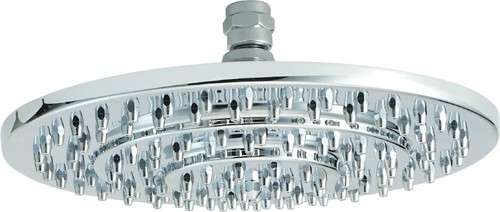 10" Shower head in chrome with swivel joint. Minimum pressure required is 3.0 bar or above.