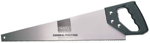 General purpose hardpoint handsaw. 500mm long with 8 teeth per inch (pitch 8). This is a straight back saw with hardened and tempered polished cast steel blade. The induction hardened teeth require no sharpening or setting. The tough plastic handle is fixed to the blade by three rivets and incorporates a 45° and 90° angle feature.