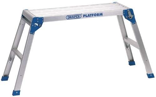 2 Step aluminium working platform. Manufactured from hardened anodised aluminium with anti-slip foot caps. Locking safety arms prevent pinching and the folding legs enable easy storage and transportation.