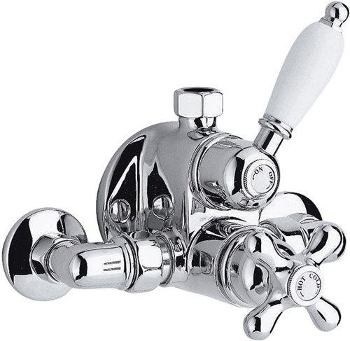 Exposed thermostatic shower valve 1/2" in chrome. Minimum water pressure 1.5 bar.