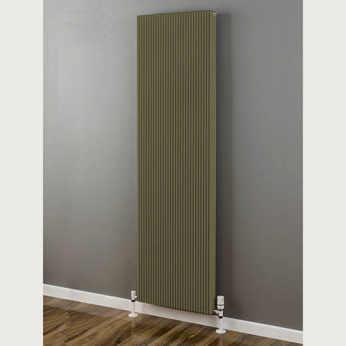 EcoHeat Hadlow vertical aluminium radiator with wall brackets in grey beige (1826x400mm).