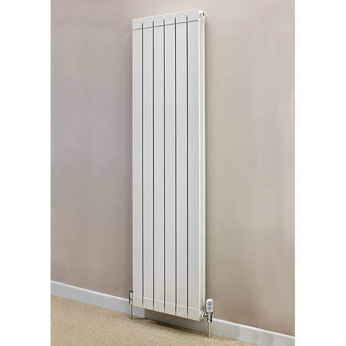 EcoHeat Saxon vertical aluminium radiator with wall brackets in white (1846x260mm).