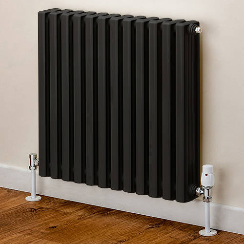 EcoHeat Woburn column style horizontal aluminium radiator with wall brackets in jet black (568x420mm).