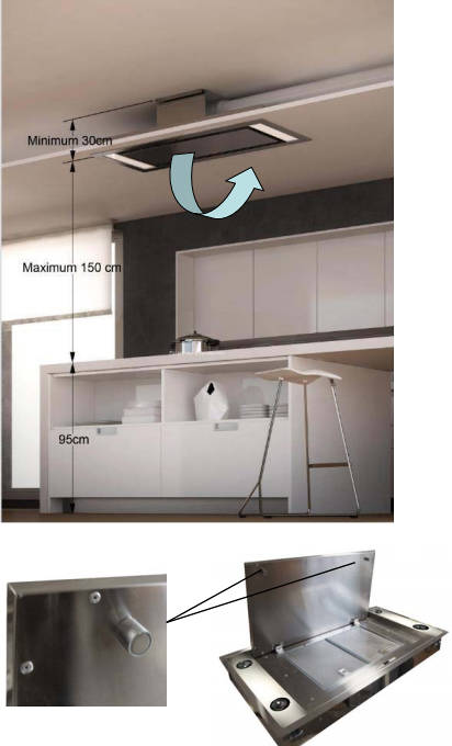 Galaxy 3 Slim 955cm ceiling mounted cooker hood in stainless steel with remote control.