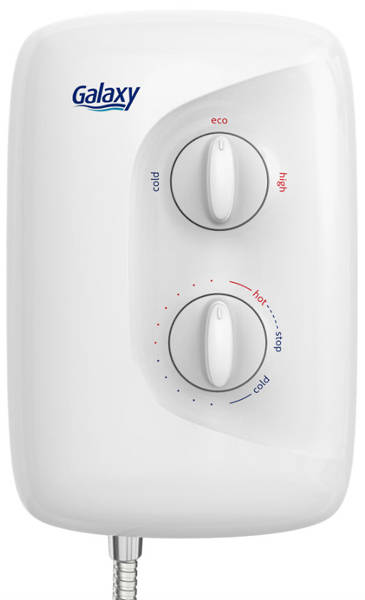 Galaxy Aqua 2000E electric shower 8.5kW in white and chrome.