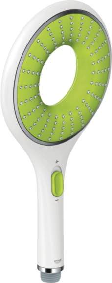 Rainshower Icon shower handset in white and green with water saving eco button. Size 145mm diameter.