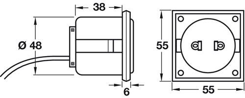 - Socket is suitable for zone 2 of bathrooms.