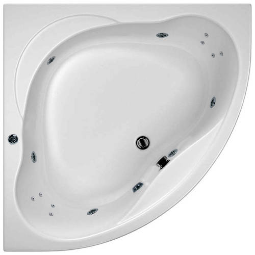 Hydrabath Laguna corner turbo whirlpool bath with 14 jets, legs, pre-fitted pump, electronic controls and front panel (1400x1400mm).