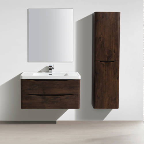 Bali wall mounted bathroom vanity unit in chestnut finish with basin and wall mounted storage unit (pack 01).