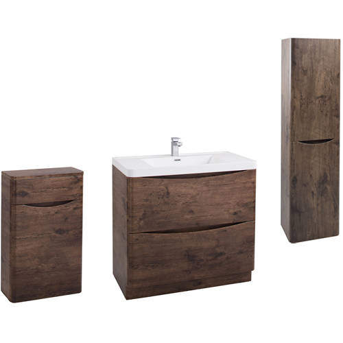 Bali free standing bathroom vanity unit in chestnut finish with basin, wc unit and wall mounted storage unit (pack 09).