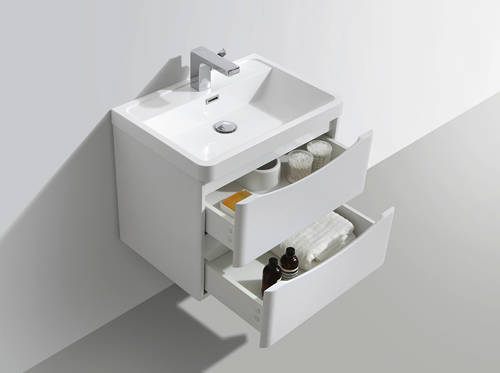 Bali wall mounted bathroom vanity unit in white ash finish with basin and wall mounted storage unit (pack 03).