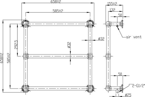 Oxford traditional wall mounted towel radiator in chrome (658x658mm).