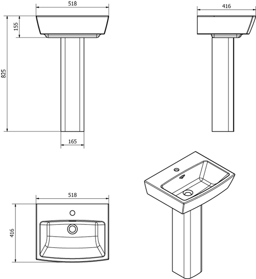 - Basin is suitable for mono basin mixer taps (1 tap hole).