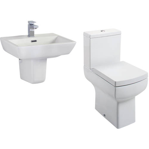 Oxford Daisy Lou contemporary bathroom suite with comfort height close coupled toilet pan, cistern, seat, one tap hole basin and semi pedestal.