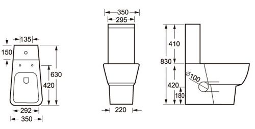 Oxford Dearne 4 piece bathroom suite with close coupled toilet pan, cistern, wrapover seat, one tap hole basin and full pedestal.