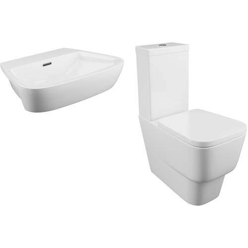 Oxford Dearne bathroom suite with close coupled toilet pan, cistern, wrapover seat and one tap hole semi recessed basin.
