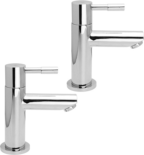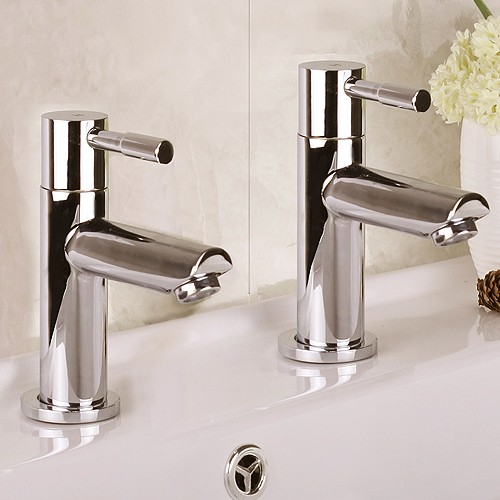Pair of basin taps in chrome.