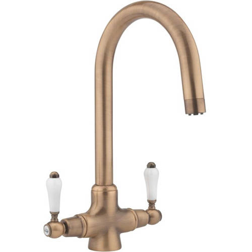 Hydra Evie Pro kitchen tap in copper with swivel spout and twin lever controls.