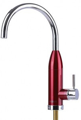 Hydra deluxe instant electric heated water kitchen mixer tap in red and chrome with swivel spout.
