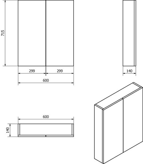 Idon mirror bathroom cabinet in black finish with 2 doors.