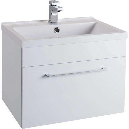 Idon wall mounted bathroom vanity unit in gloss white finish with drawer and white basin.