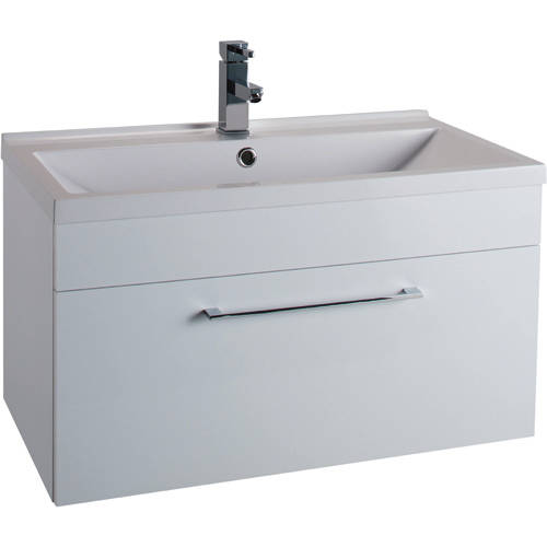 Idon wall mounted bathroom vanity unit in gloss white finish with drawer and white basin.
