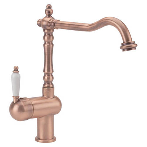 Hydra Oxford kitchen tap in copper finish with swivel spout and lever control.