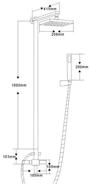 - Includes fixed square shower head with swivel knuckle (200mm x 200mm).