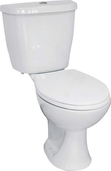 Modern toilet with dual flush cistern, fittings and seat. Size 460W x 720D x 800H mm.