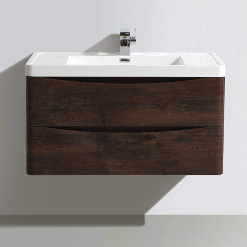 Bali wall mounted bathroom vanity unit in chestnut finish with basin.