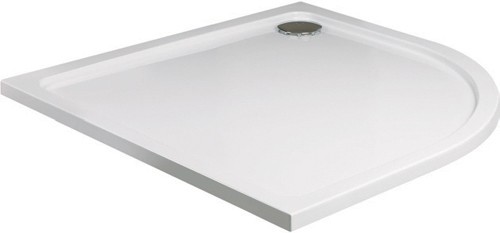 Slimline quadrant shower tray. Matt white, size 900x900x40mm. Includes dedicated 90mm chrome shower waste.