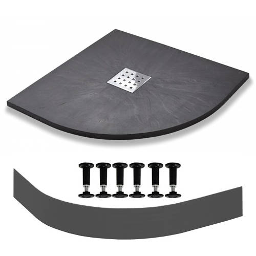 Slate Trays quadrant shower tray in graphite slate effect finish with chrome integrated waste and easy plumb kit (800x27mm).