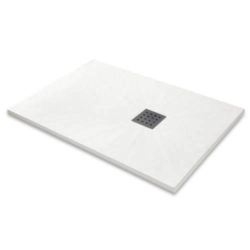 Slate Trays rectangular shower tray in white slate effect finish with graphite integrated waste (1700x800x27mm).