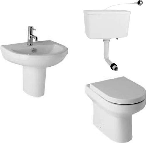 Revive 4 piece suite with back to wall toilet pan, soft close seat, concealed cistern, basin and wall mounted semi pedestal.