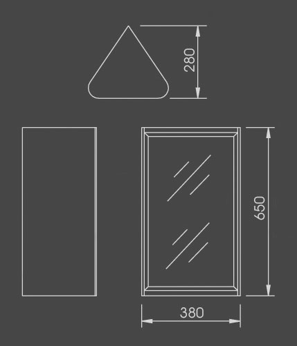 Arklow stainless steel corner mirror bathroom cabinet. Size 380x650mm.