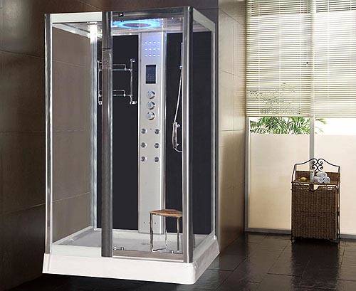 Rectangular steam shower enclosure / pod in chrome with black glass (1200x900mm).