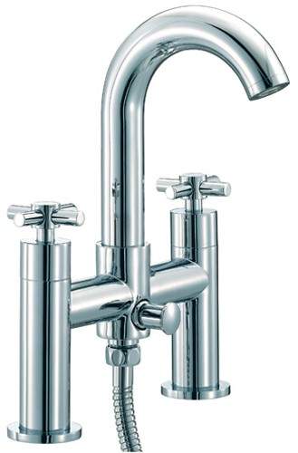 Bath shower mixer with shower kit in chrome. This bathroom tap has a high spout. A low spout version is also available.