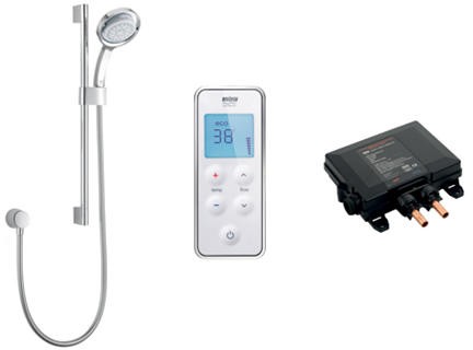 Mira Vision rear fed wireless digital shower in white and chrome (pumped).