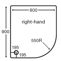 Stone resin offset quadrant shower tray with gel coat finish. Size 900x800x110mm. This shower tray has a 550mm radius and should only be fitted to shower enclosures with a 550mm radius (left handed).
