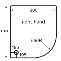Easy plumb stone resin offset quadrant shower tray with adjustable legs and removable side panel for easy installation and maintenance. Size 1000x800x40mm.