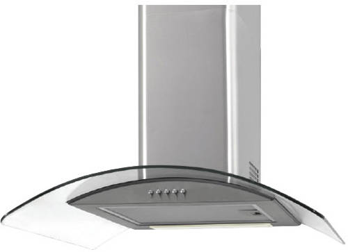 600mm Cooker hood in stainless steel with curved glass and lights.