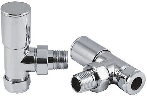 Heating element pack for towel radiator in chrome with modern angled valves. 150 Watts.