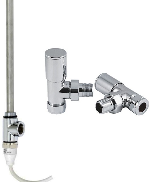 Heating element pack for towel radiator in chrome with modern angled valves. 600 Watts.